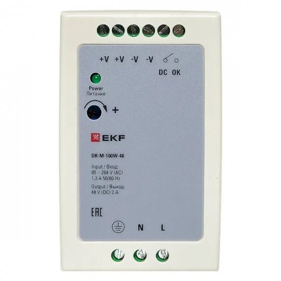 EKF DR-M-100W-48 Блок питания на дин рейку 100Вт,Uвх ~ 220 В AC m, Uвых - 48 В DC