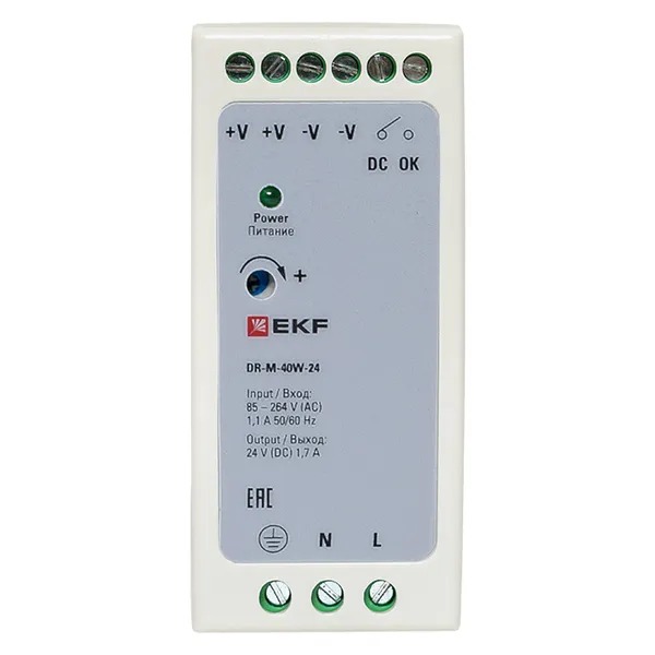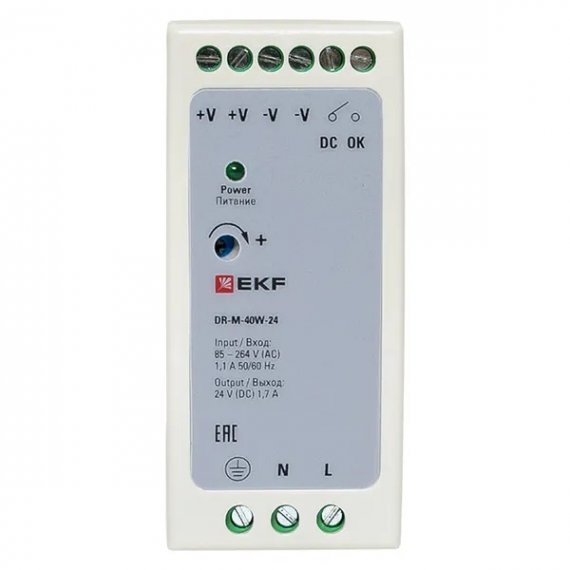 EKF DR-M-40W-24 Блок питания на дин рейку 40Вт,Uвх ~ 220 В AC m, Uвых - 24 В DC
