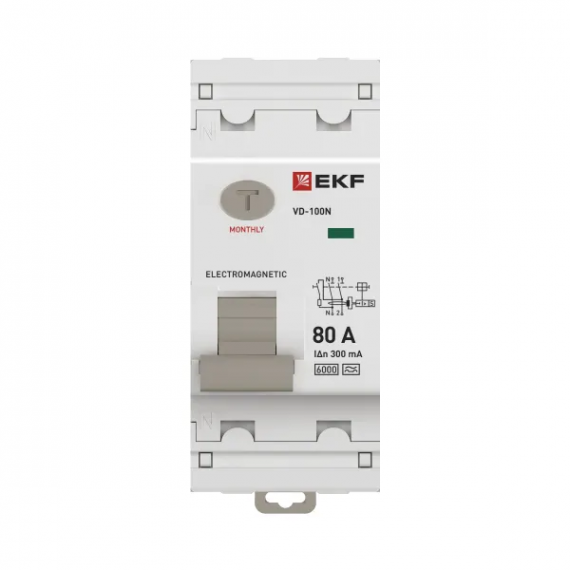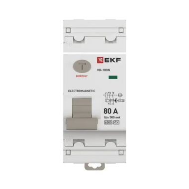 EKF E1026MA80300 Выключатель дифференциального тока ВД-100N 2P 80А 300мА A эл-мех 6кА