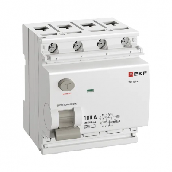 Выключатель дифференциального тока ВД-100N 4P 100А 300мА тип AC эл-мех 6кА PROXIMA EKF