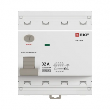 Выключатель дифференциального тока ВД-100N 4P 32А 300мА AC эл-мех 6кА PROXIMA EKF