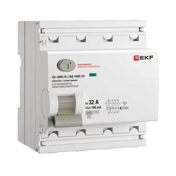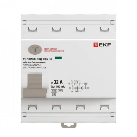 Выключатель дифференциального тока ВД-100N (S) 4P 32А 100мА тип AC эл-мех 6кА PROXIMA EKF