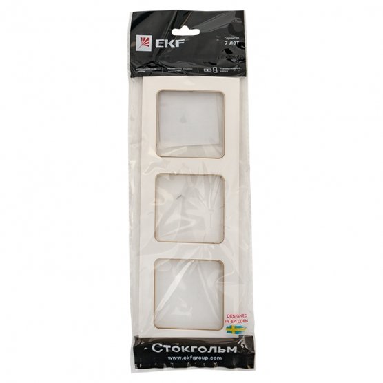 Стокгольм Рамка 3-местная белая с линией цвета шампань EKF PROxima