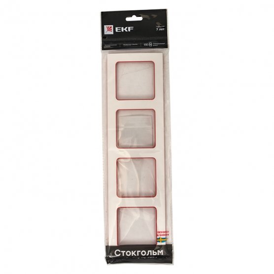 Стокгольм Рамка 4-местная белая с линией цвета красный EKF PROxima