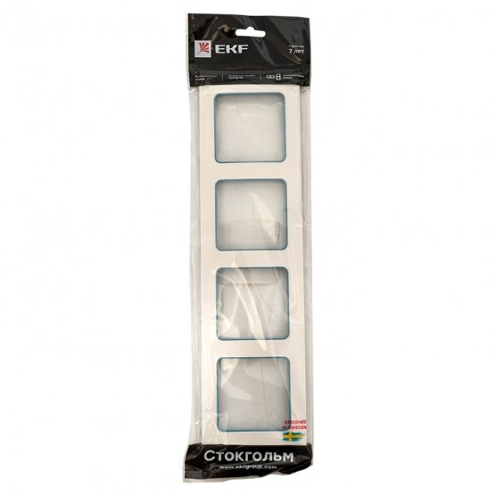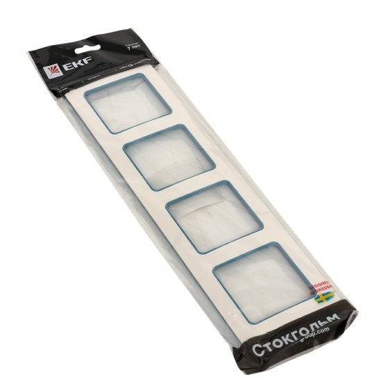 Стокгольм Рамка 4-местная белая с линией цвета синий EKF PROxima