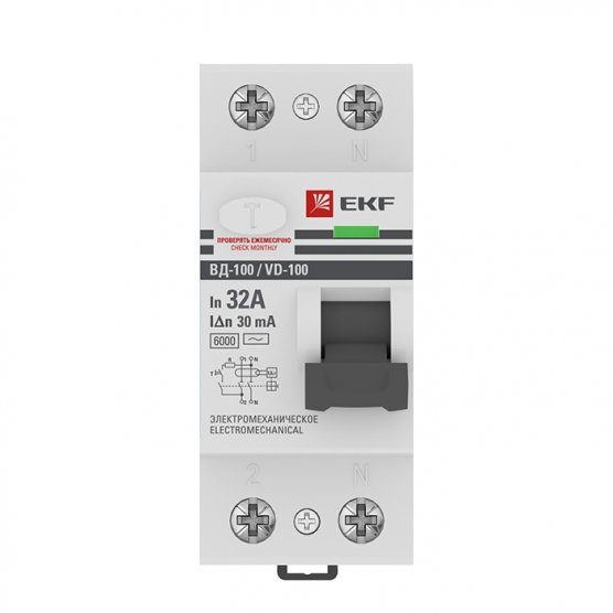 Устройство защитного отключения ВД-100 2P 32А 30мА (тип АС, электромеханическое) 6кА EKF PROxima