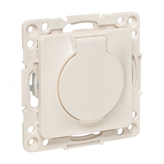 Стокгольм Механизм Розетки 1-местной с/з 16А белый с крышкой и защ. штор. IP44 EKF PROxima