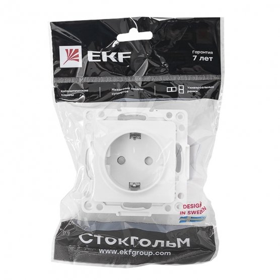 Стокгольм Механизм Розетки 1-местной с/з 16А белый с защ. штор. EKF PROxima