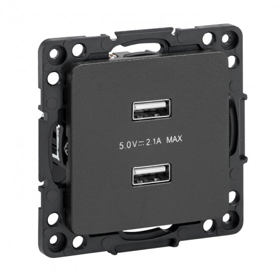 Стокгольм Механизм Розетки USB 2-местной 2,1А черный EKF PROxima