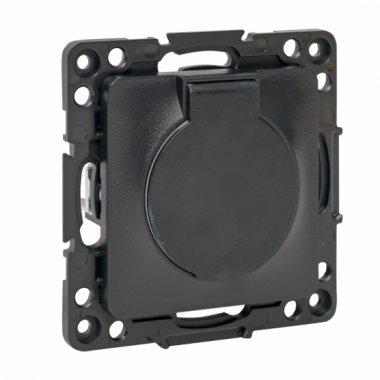 Стокгольм Механизм Розетки 1-местной с/з 16А черный с крышкой и защ. штор. IP44 EKF PROxima
