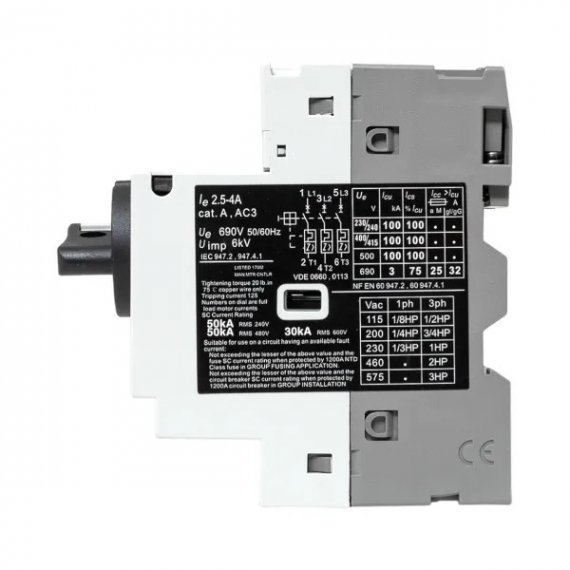 | Диапазон установки расцепителя перегрузки, А | 2,5...4 |