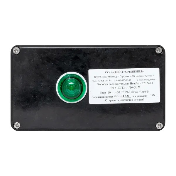 Коробка Heat box 220 S-L1 предназначена для индикации напряжения на саморегулирующихся нагревательных кабелях марок ESR, ESS и ESU. Коробка устанавливается на трубопровод при помощи кронштейна или на близлежащую металлоконструкцию.