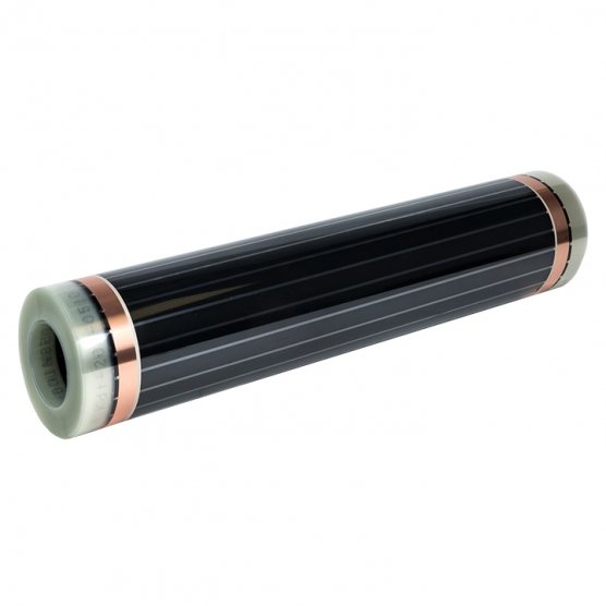 Пленочный теплый пол EKF применяется для сухого монтажа без стяжки не только при капитальном ремонте, но и при косметическом. Толщина пленки -0,338 мм. Обеспечивает быстрый и легкий монтаж. Идеально подходит для укладки под ламинат, паркетную доску, мягкое напольное покрытие: линолеум, ковролин. Инфракрасный пленочный теплый пол состоит из следующих элементов. Полосы углеродного материала шириной около 1,5 см соединены между собой при помощи медных шин с серебряным покрытием, которые и проводят электрический ток. Нагревательный элемент заламинирован с двух сторон плотным полимером, который не задерживает инфракрасное излучение и обеспечивает отличную защиту от попадания влаги, пробоев и возгорания.