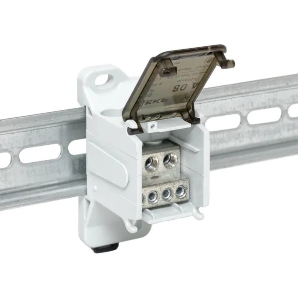 Клеммный блок распределительный КБР EKF — практичное решение для безопасного и удобного распределения питания в электрощитах и шкафах. Выполняет роль переходного клеммника: позволяет подключить жилу большего сечения к нескольким проводникам меньшего сечения и использовать устройство как главную заземляющую шину (ГЗШ). Усиленная защелка на DIN-рейку обеспечивает надежную фиксацию при монтаже и эксплуатации. Предусмотрена возможность пломбировки для защиты от несанкционированного доступа. Все типоразмеры КБР совместимы и соединяются между собой, что упрощает масштабирование и компоновку щита. Крышка открывается в обе стороны для быстрого обслуживания и подключения. Продукция локализована.