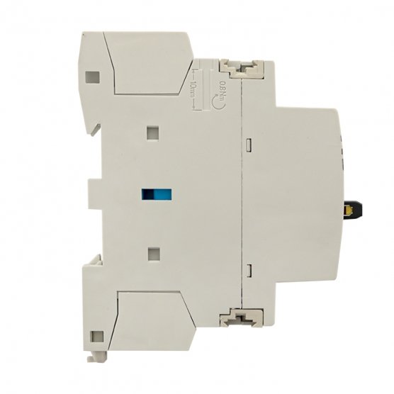 Модульные контакторы представляют из себя контактор в классическом корпусе модульного оборудования. Он состоит из неподвижных контактов, подвижных контактов, которые закреплены в подвижной части магнитной системы. Неподвижная часть магнитной системы закреплена жестко в корпусе КМ. Пружина препятствует смыканию контактов. При подаче напряжения на катушку управления в магнитной системе контактора возникает магнитное поле, которое, преодолевая сопротивление пружины, смыкает магнитную систему и замыкает контакты. При отключении напряжения с катушки управления пружина размыкает контакты. Возможна коммутация алюминиевым и медным проводом.