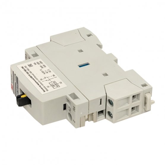 Модульные контакторы представляют из себя контактор в классическом корпусе модульного оборудования. Он состоит из неподвижных контактов, подвижных контактов, которые закреплены в подвижной части магнитной системы. Неподвижная часть магнитной системы закреплена жестко в корпусе КМ. Пружина препятствует смыканию контактов. При подаче напряжения на катушку управления в магнитной системе контактора возникает магнитное поле, которое, преодолевая сопротивление пружины, смыкает магнитную систему и замыкает контакты. При отключении напряжения с катушки управления пружина размыкает контакты. Возможна коммутация алюминиевым и медным проводом.