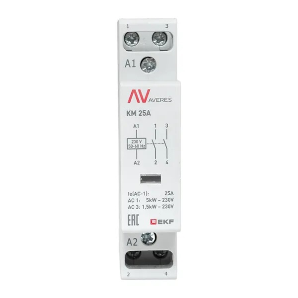 Контактор модульный КМ 25А 2NO 230В АС (1 мод.) AVERES EKF