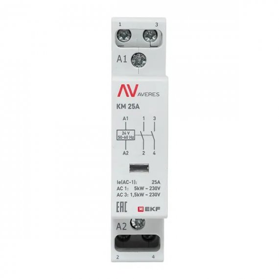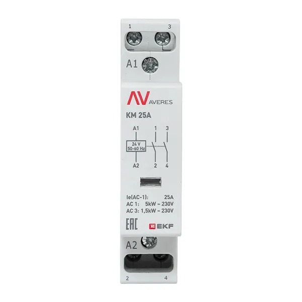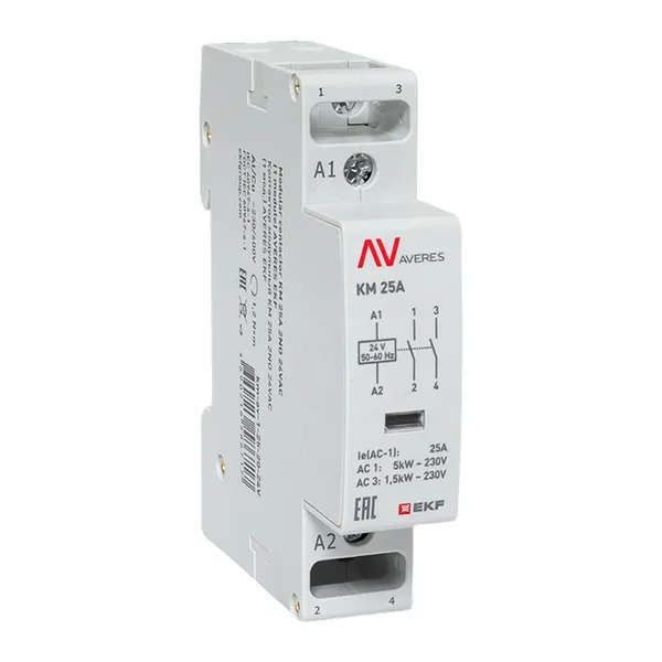 Контактор модульный КМ 25А 2NO 24В АС (1 мод.) AVERES EKF