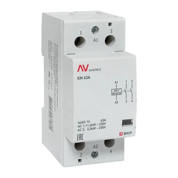 Контактор модульный КМ 63А 2NO 230В АС (2 мод.) AVERES EKF