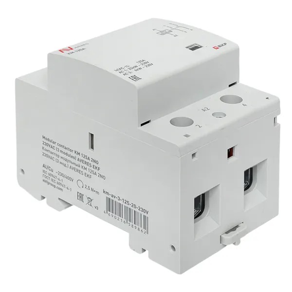 Модульные контакторы KM Averes представляют собой высококачественное оборудование, предназначенное для эффективного управления и коммутации в электрических цепях, используемых в освещении, системах отопления, а также для контроля работы электродвигателей и насосного оборудования. Они разработаны с учетом потребностей современных промышленных и бытовых приложений и отличаются возможностью работы с различными уровнями напряжения управления — 24, 48, 110 и 230 В, обеспечивая широкую адаптивность к разнообразным системам питания. Серия KM Averes предлагает контакторы с диапазоном номинальных токов от 20 до 125 ампер для работы в категориях АС-1 и АС-3 (AC-7a; АС-7б). Такой выбор позволяет точно подстроить контактор под заданные параметры электрической нагрузки, обеспечивая надежность и эффективность в любой системе.