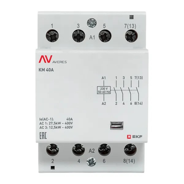 Контактор модульный КМ 40А 4NO 230В АС (3 мод.) AVERES EKF