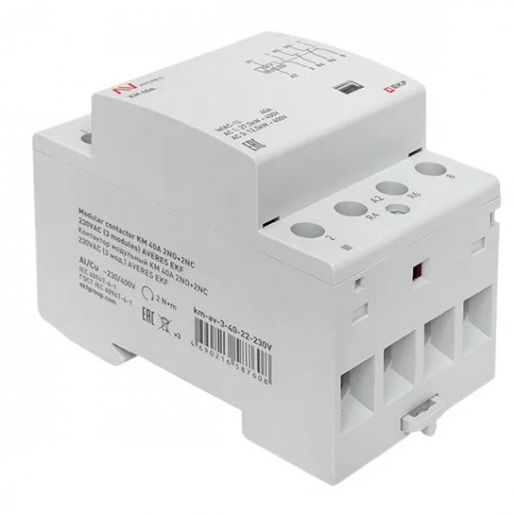 Модульные контакторы KM Averes представляют собой высококачественное оборудование, предназначенное для эффективного управления и коммутации в электрических цепях, используемых в освещении, системах отопления, а также для контроля работы электродвигателей и насосного оборудования. Они разработаны с учетом потребностей современных промышленных и бытовых приложений и отличаются возможностью работы с различными уровнями напряжения управления — 24, 48, 110 и 230 В, обеспечивая широкую адаптивность к разнообразным системам питания. Серия KM Averes предлагает контакторы с диапазоном номинальных токов от 20 до 125 ампер для работы в категориях АС-1 и АС-3 (AC-7a; АС-7б). Такой выбор позволяет точно подстроить контактор под заданные параметры электрической нагрузки, обеспечивая надежность и эффективность в любой системе.