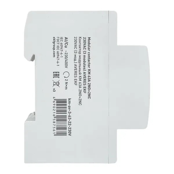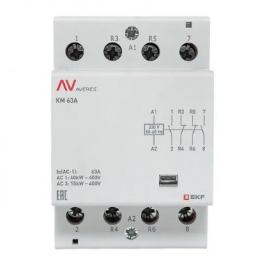 EKF km-av-3-63-22-230V Контактор модульный КМ 63А 2NO+2NC 230В АС