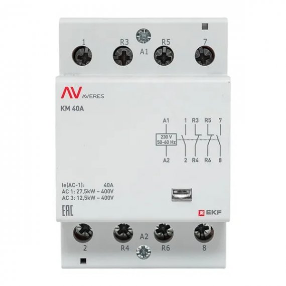 Модульные контакторы KM Averes представляют собой высококачественное оборудование, предназначенное для эффективного управления и коммутации в электрических цепях, используемых в освещении, системах отопления, а также для контроля работы электродвигателей и насосного оборудования. Они разработаны с учетом потребностей современных промышленных и бытовых приложений и отличаются возможностью работы с различными уровнями напряжения управления — 24, 48, 110 и 230 В, обеспечивая широкую адаптивность к разнообразным системам питания. Серия KM Averes предлагает контакторы с диапазоном номинальных токов от 20 до 125 ампер для работы в категориях АС-1 и АС-3 (AC-7a; АС-7б). Такой выбор позволяет точно подстроить контактор под заданные параметры электрической нагрузки, обеспечивая надежность и эффективность в любой системе.