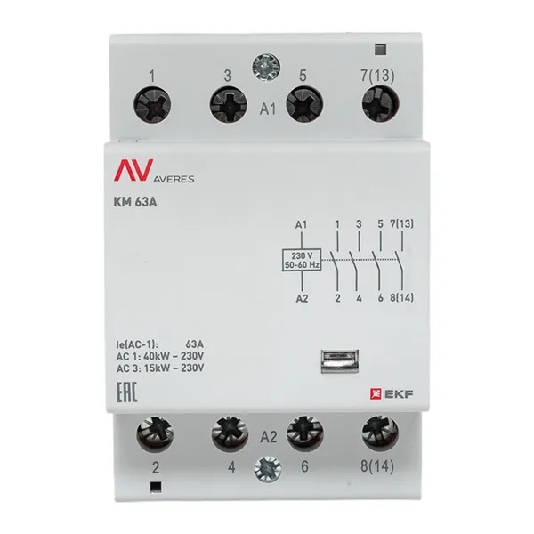 Контактор модульный КМ 63А 4NO 230В АС (3 мод.) AVERES EKF