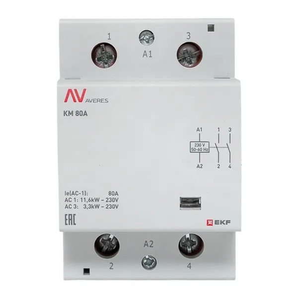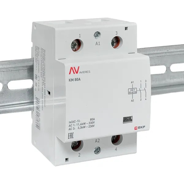 Контактор модульный КМ 80А 2NO 230В АС (3 мод.) AVERES EKF