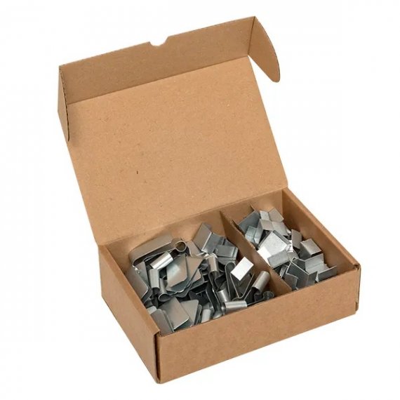 Металлический крепеж ТСР, КТСР представляет собой унифицированный крепеж, изготовленный из оцинкованной стали для крепления как саморегулирующихся (ТСР), так и резистивных нагревательных кабелей постоянной мощности (КТСР). Позволяют осуществить надежное и безопасное крепление нагревательных кабелей в обогреваемых зонах и предотвращает скручивание или самопересечение двух ниток кабеля между собой при монтаже. Выпускается для крепления как одной нитки кабеля к обогреваемой поверхности, так и двух ниток нагревательного кабеля между собой. Для монтажа зажимов в обогреваемых желобах применяется полоса стальная оцинкованная 0,5х15 мм, для монтажа зажимов с нагревательным кабелем в водосточных трубах – трос стальной в ПВХ оболочке.