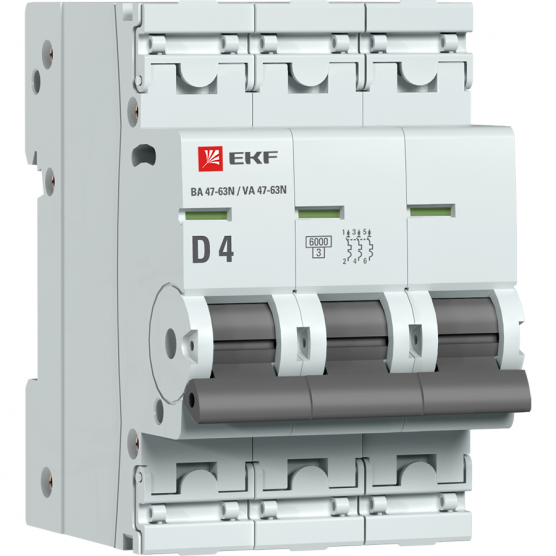 Автоматический выключатель 3P 4А (D) 6кА ВА 47-63N EKF PROxima