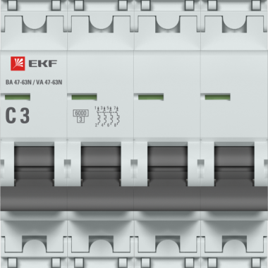 Автоматический выключатель 4P 3А (C) 6кА ВА 47-63N EKF PROxima