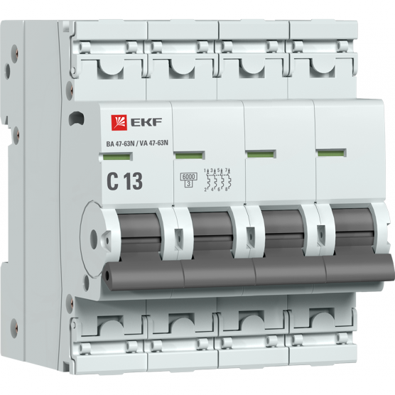 Автоматический выключатель 4P 13А (C) 6кА ВА 47-63N EKF PROxima
