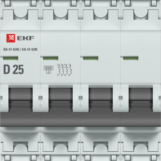 Автоматический выключатель 4P 25А (D) 6кА ВА 47-63N EKF PROxima