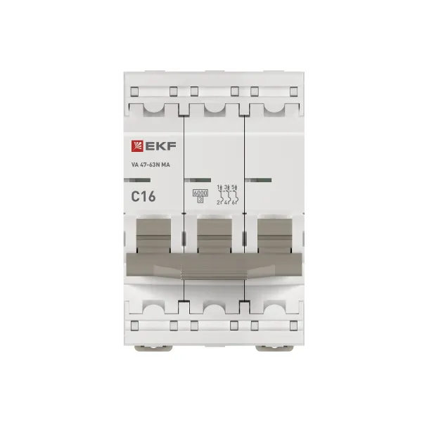 EKF M63MA6316C Автоматический выключатель ВА 47-63N MA 3P 16А (C) 6кА без теплового расцепителя
