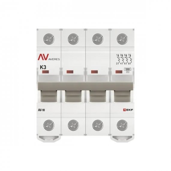Выключатель автоматический AV-10 4P 3A (K) 10kA EKF AVERES