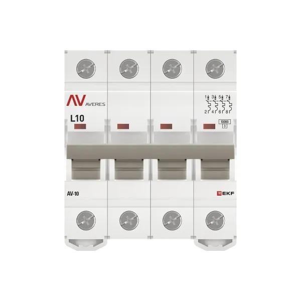 Выключатель автоматический AV-10 4P 10A (L) 10kA EKF AVERES