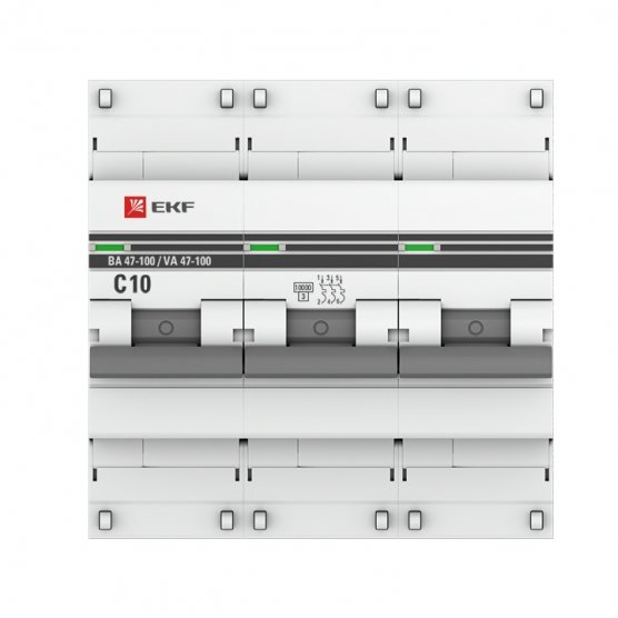 Автоматический выключатель ВА 47-100, 3P 10А (C) 10kA EKF