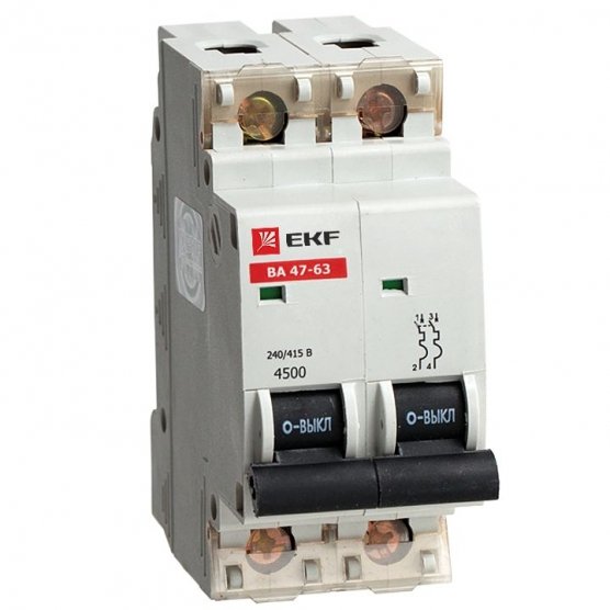 Автоматический выключатель ВА 47-63, 2P 1А (C) 4,5kA EKF