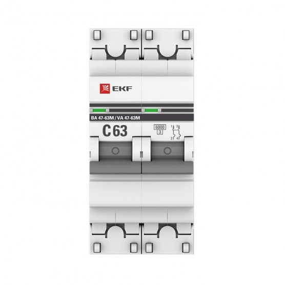 EKF mcb4763m-6-2-63C-pro Автоматический выключатель 2P 63А (C) 6кА ВА 47-63M