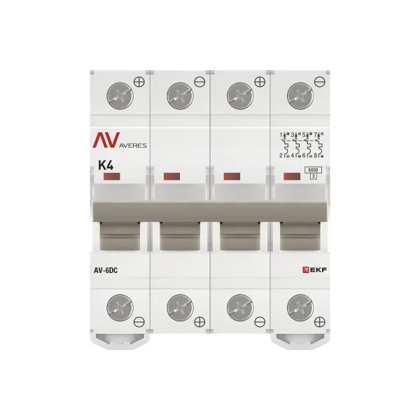Выключатель автоматический AV-6 DC 4P 4A (K) 6kA EKF AVERES