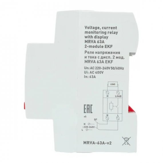 EKF MRVA-63A-v2 Реле напряжения и тока с дисп. 2 мод. MRVA 63A