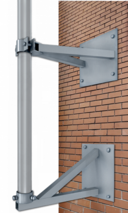 Молниеприемник секционный стеновой МССП-24 высотой 24м крепится с помощью специальных аксессуаров к вертикальным поверхностям. Используется для защиты зданий и сооружений в случаях, когда нет возможности осуществить монтаж на кровле.