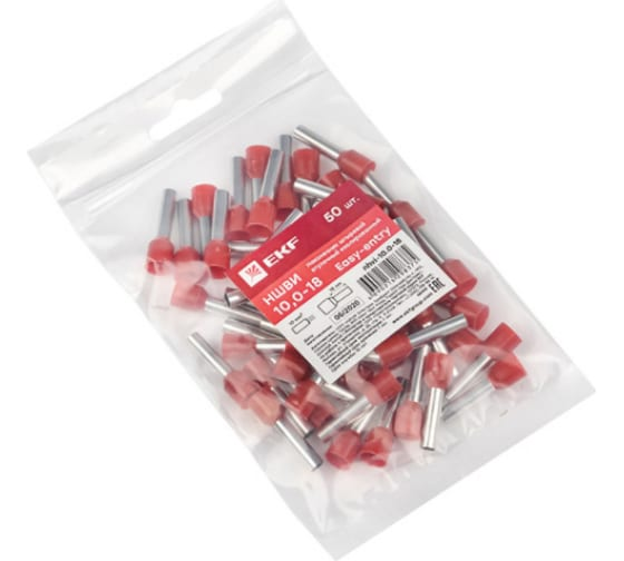 Одинарные и двойные втулочные наконечники (НШвИ и НШвИ2) EKF PROxima являются единственными специально разработанными наконечниками под опрессовку, которые полностью заменяют обязательный процесс облуживания многопроволочных медных проводов (типа ПВ-3, ПВС и т.п.) при монтаже различного электрооборудования. Втулочные наконечники состоят из медной луженой трубки, один конец которой развальцован для облегчения ввода многожильного провода и изолирующей манжеты из полипропилена.