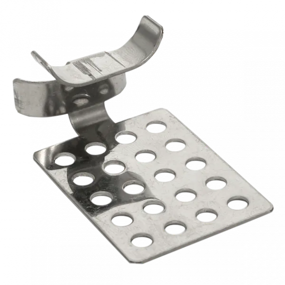 Зажим предназначен для крепления нагревательных кабелей в случае обогрева края кровли. Крепление к кровле осуществляется с помощью Полиуретанового клея - герметика Рабберфлекс ПРО ПУ-50 (или аналога). Поставляется в упаковках по 50 шт.