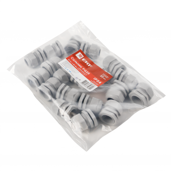 Сальник PG25 IP54 (20 шт) d отв. 31 мм / d провод. 16-21 мм EKF PROxima