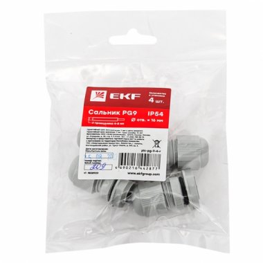 Сальник PG9 IP54 (4 шт) d отв. 16мм / d провод. 4-8 мм EKF PROxima