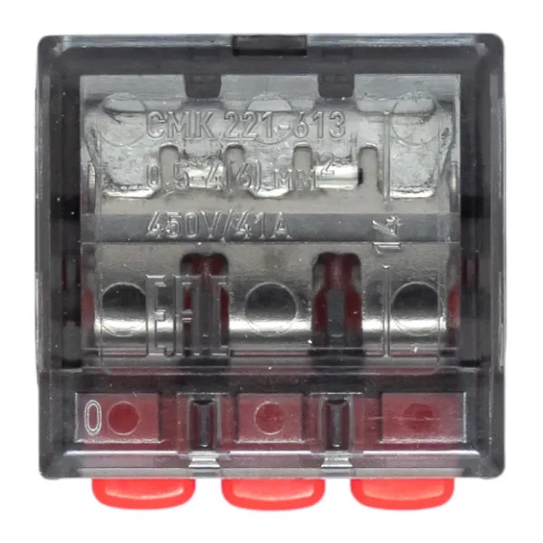 Клеммы СМК-221 EKF стали результатом развития классической серии СМК-222 и выделяются на российском рынке своим уникальным дизайном. Изделия предназначены для присоединения и ответвления одножильных и многожильных проводов сечением до 6 мм2 в цепях переменного тока до 400В. Клеммы СМК-221 отличаются повышенной прочностью и рассчитаны на многократное использование. Кроме того, новые клеммы можно использовать при температуре от –40 до +40° C и относительной среднегодовой влажности 60% при температуре 20° C. Новые надежные клеммы СМК-221, которые заметно облегчают процесс монтажа проводки, предназначены для электриков и строителей. Во избежание перегрева в одну клемму предусматривается подключение проводов одного сечения.