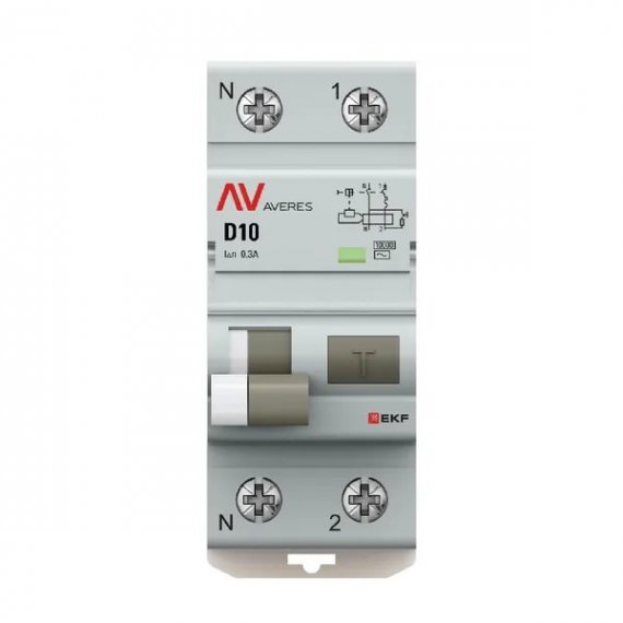 Автоматический выключатель дифференциального тока DVA-10 1P+N 10А характеристика D 300мА тип AС электромеханический 10кА AVERES EKF